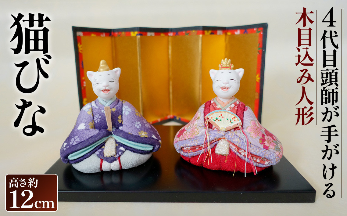 可愛らしい猫が美しい縮緬(ちりめん)に包まれ、慎重に木目込みで仕上げられました。