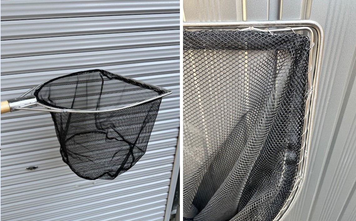 網目3mm、魚体にやさしいラッセル網使用、本格的木製柄ネットは内側の3mmステン丸棒にステンレスワイヤーで固定してあり、網のスレ切れを防止しております。