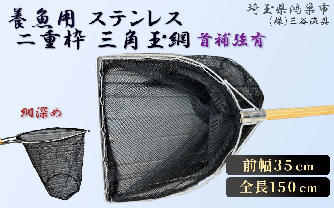 【網深め】養魚用ステンレス二重枠三角玉網(BL-35-3L)首補強有 / 釣り具 釣具 釣り道具 三谷漁具 玉網 たまあみ タマアミ 首補強有 養魚用 ステンレス アウトドア 鴻巣市 No.545