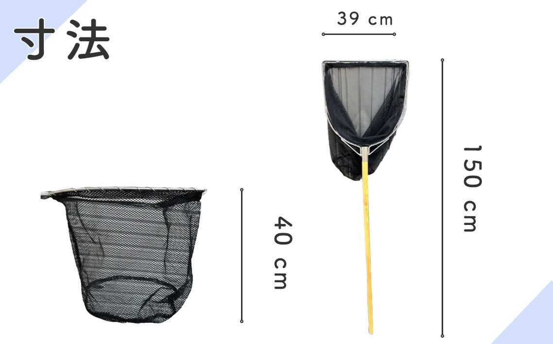 | 容量 | サイズ(前幅):39cm 首補強有 網深さ:40cm 網目:3mm/黒色 全長:150cm 日付指定不可となります(時間帯指定のみ可) |