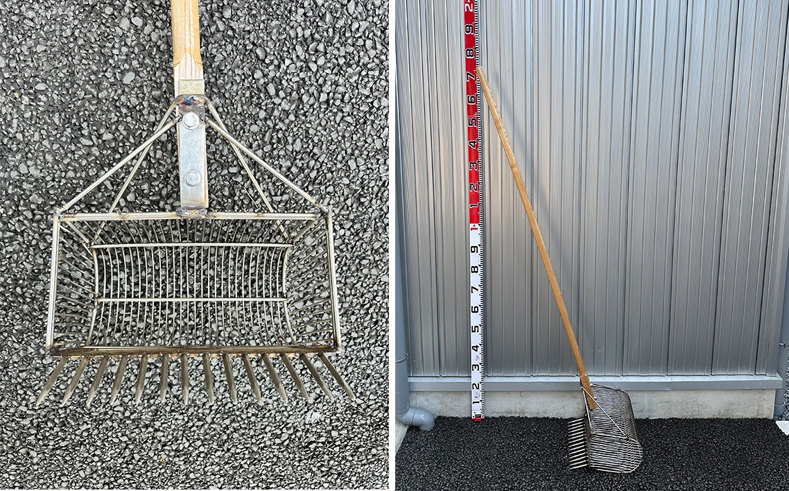 貝堀ジョレン(潮干狩り用貝取りジョレン)kz-4 / じょれん 欲張り 極太柄付き 爪14本 スリット1cm カゴ付き 埼玉県 No.584
