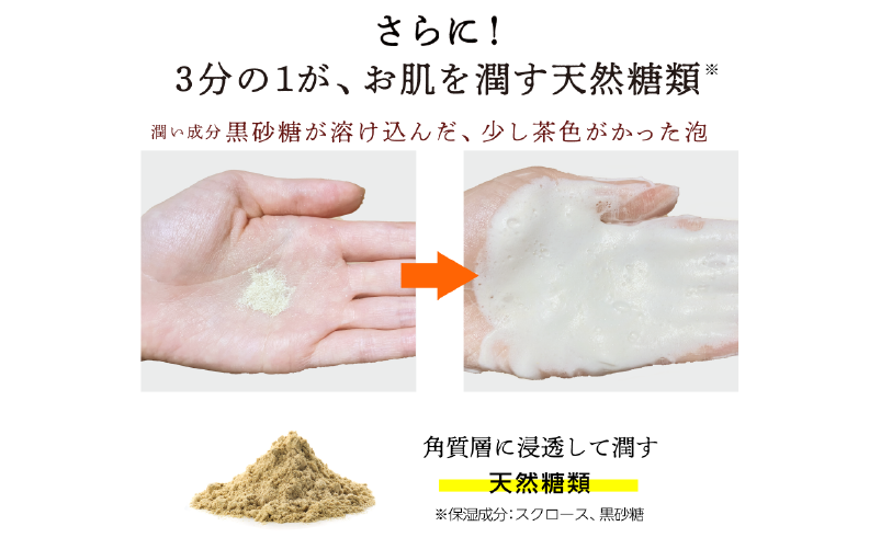 ※1 コメヌカ(洗浄補助成分) ※2 パパイン、プロテアーゼ、リパーゼ(洗浄補助成分) ※3 黒砂糖、スクロース ※4 黒砂糖、スクロース