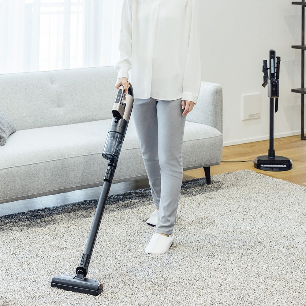 オブジェの様な感じでリビングに常設でき、気軽に掃除機を手に取ることができるので、掃除機を使う回数が自然に増えました。
