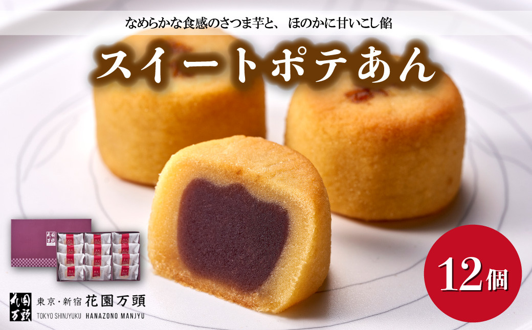 ちょっとしたお茶時間にいかがですか?手土産にも◎ 花園万頭 スイートポテあん 12個入 | 埼玉県 上尾市 お菓子 和菓子 焼菓子 スイートポテト あんこ 餡子 スイーツ 和スイーツ 贈り物 ギフト プレゼント お祝い 贈答 甘味 芋 手土産 サツマイモ なると金時 さつまいも こしあん 饅頭 まんじゅう 茶菓子