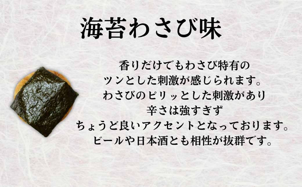 | 容量 | <内容量> 個包装/5枚袋入り(しょうゆ2枚、海苔1枚、わさび海苔1枚、つぶ1枚) 小丸2種(しょう油&黒ごま) <原材料> うるち米(国産100%)、醤油(小麦含む)、海苔、砂糖、みりん、澱粉、わさび、黒ごま |