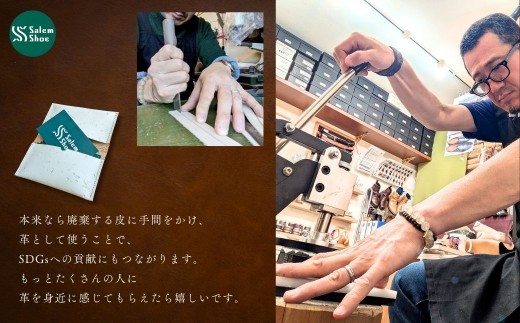 廃棄される皮を手間を掛け、革として使うことで持続可能な社会への手助けになります。少しでも多くの方に革を身近に感じてもらいたいです。