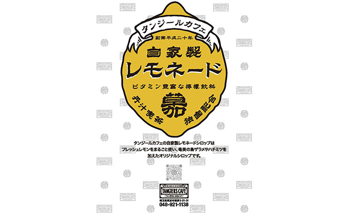 タンジールカフェ カフェ 自家製 レモネード シロップ フレッシュレモン 奄美 ザラメ はちみつ オリジナル シロップ 炭酸水 ビール 赤ワイン 焼酎 ウイスキー お酒 相性 抜群 れもん 柑橘 檸檬 草加市 埼玉県