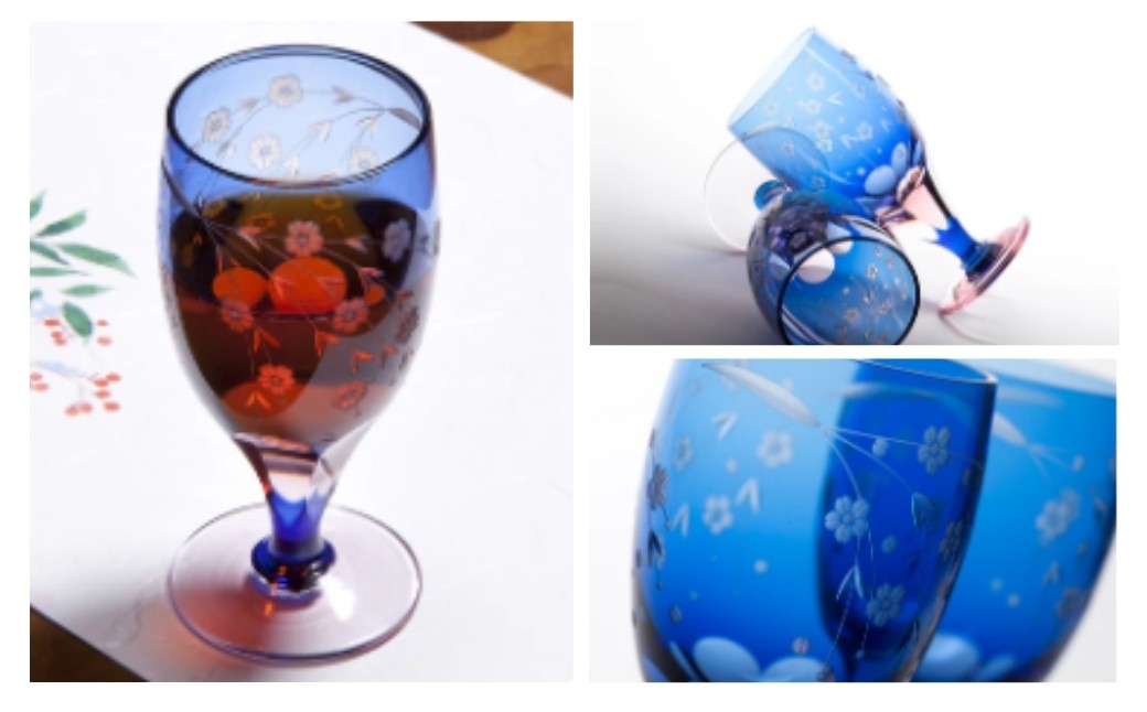 江戸切子 桜文様 足付ビール杯 ブルーピンク M-64-BP | 江戸切…