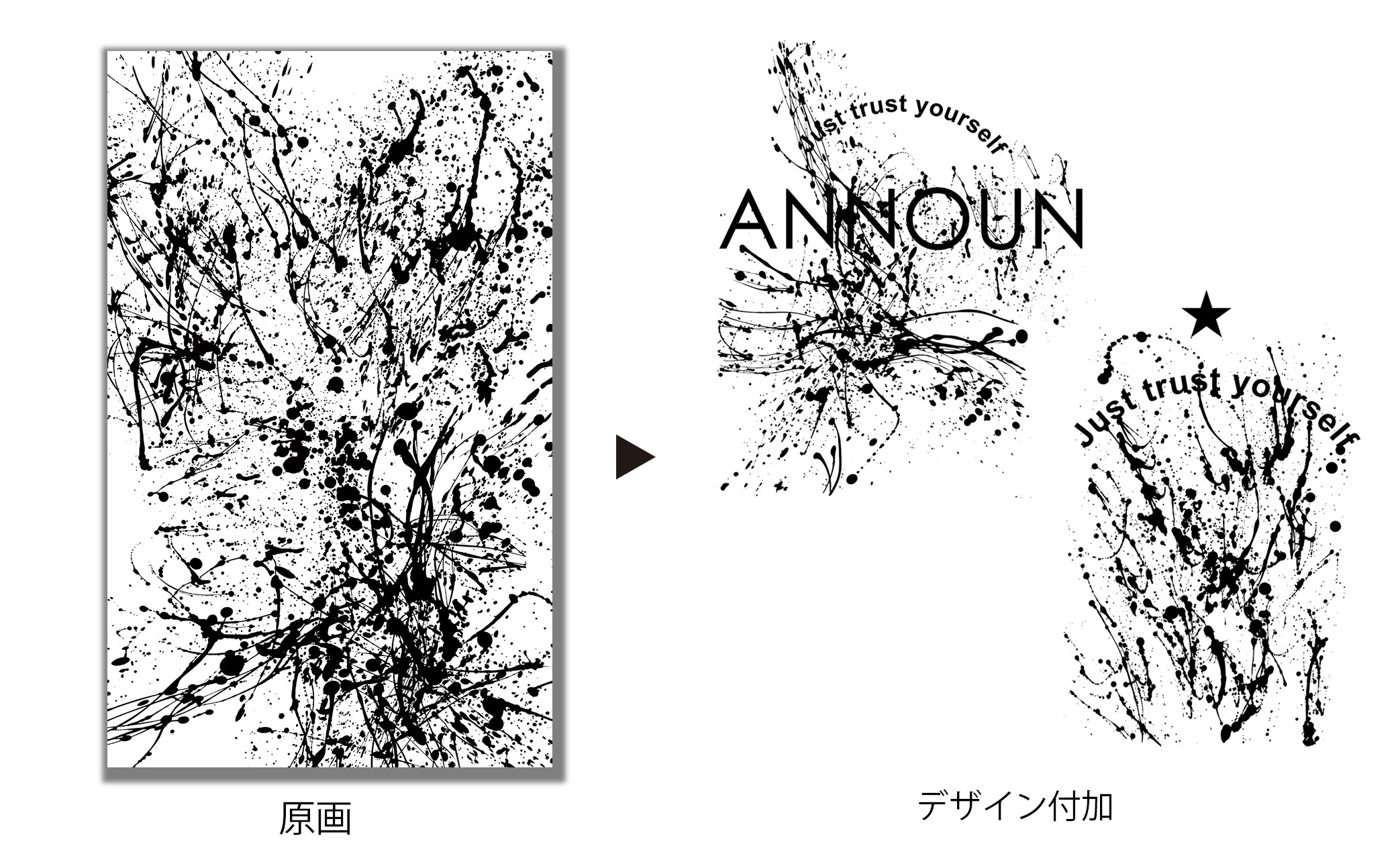 ・アクションペインティングを行い出来た原画にデザインを付加し、フロントとバッグに大きくプリントしたTシャツになります。