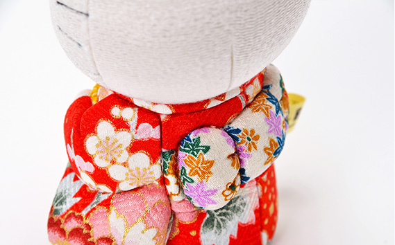 キティちゃんが手招きしているかわいらしさや和装の上品さは、職人によるきめ細やかな技術により生まれています。