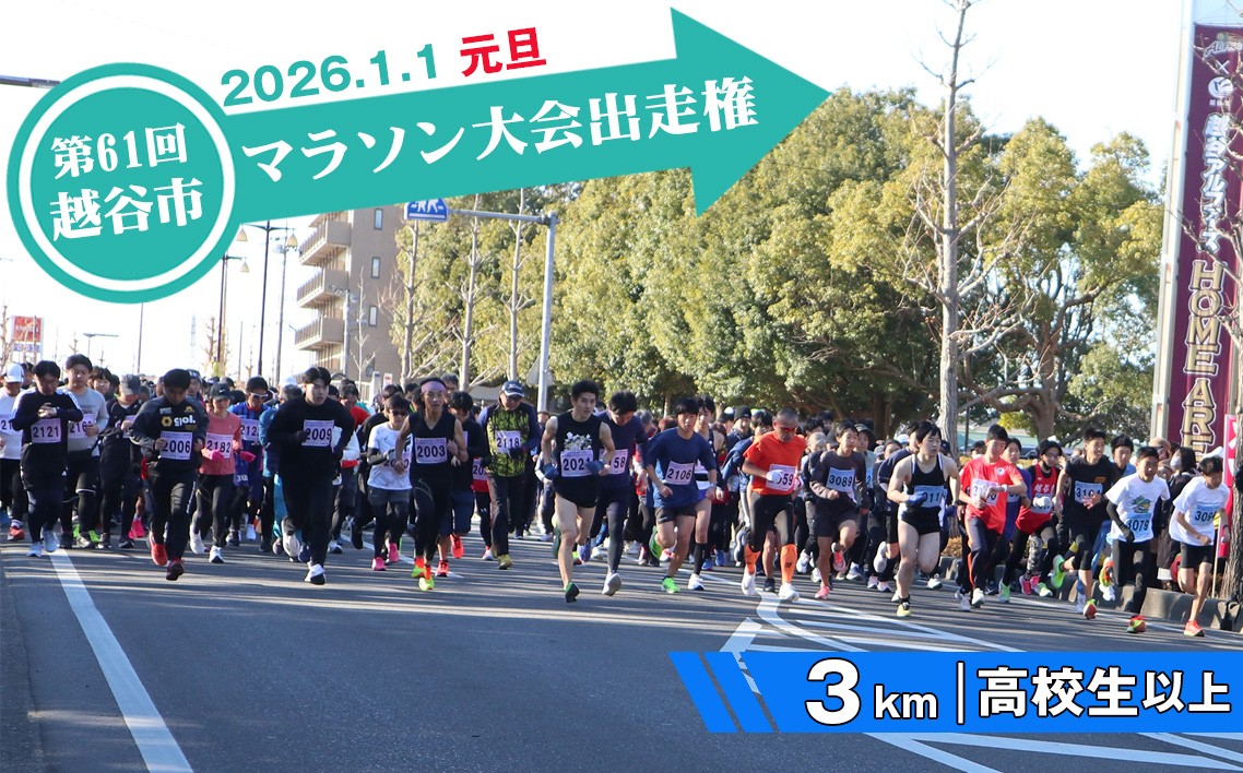第61回越谷市元旦マラソン大会出走権(高校生以上 3km) / 2026年1月1日 元日 正月 新年 年明け 新春 初走り 出走 参加券 チケット マラソン スポーツ イベント 大会 エントリー 埼玉県 No.303