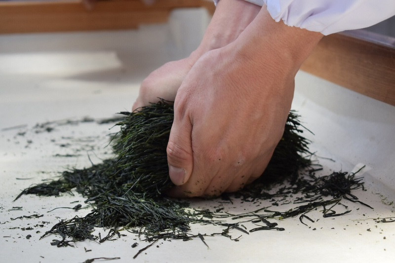 現在の機械製茶の原点は、「手揉み茶製法」にあります。当園では、日頃から品評会などを通じて、手揉み茶の技術向上に励んでいます。この技術を機械製茶に活かすことで、細かなお茶の変化にも気が付くことができ、より確実で丁寧な製造をすることができます。
