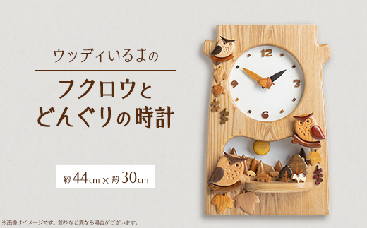 <振り子時計>ウッディいるまのフクロウとどんぐりの時計<ハ…
