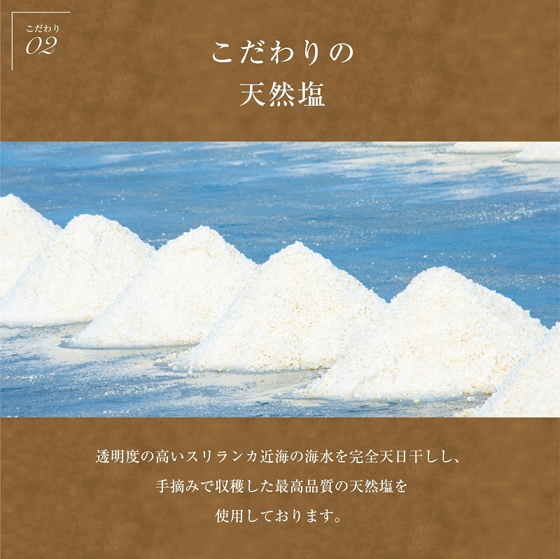 この特別なこしょうと透明度の高いスリランカ近海の天然塩を使用し、10年以上の歳月をかけ独自製法で創り上げた、塩漬けこしょうです。