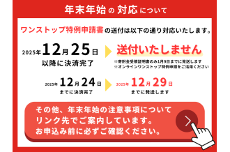 ※12月にお申込の返礼品の送付は、発送予定日よりもさらに日数がかかる場合がございます。ご了承いただきますようお願いいたします。