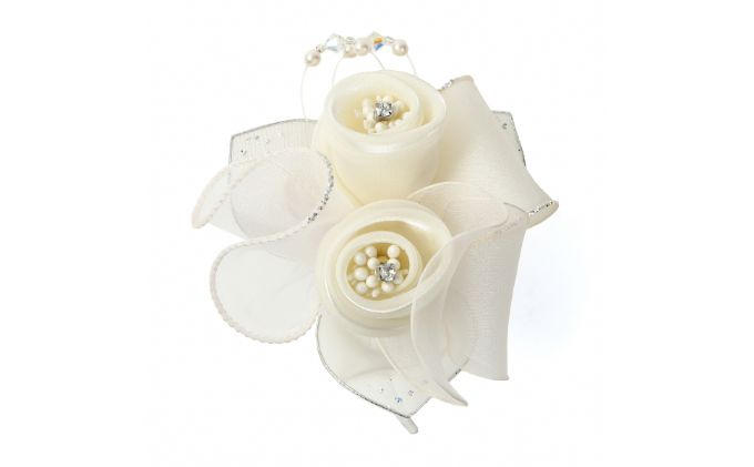 ポイントはお花に派手さはそれほど御座いませんが、テグスのパーツにはスワロフスキーを使っており、遠目から見てもきらっと上品に輝いております。