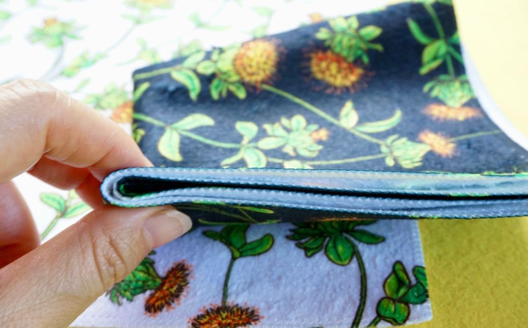 ■生産者の声 べに花柄のアイテムを作りたくてデザインからおこし、ハンドタオルを作りました。 花の開き具合が様々あるのがポイントです。