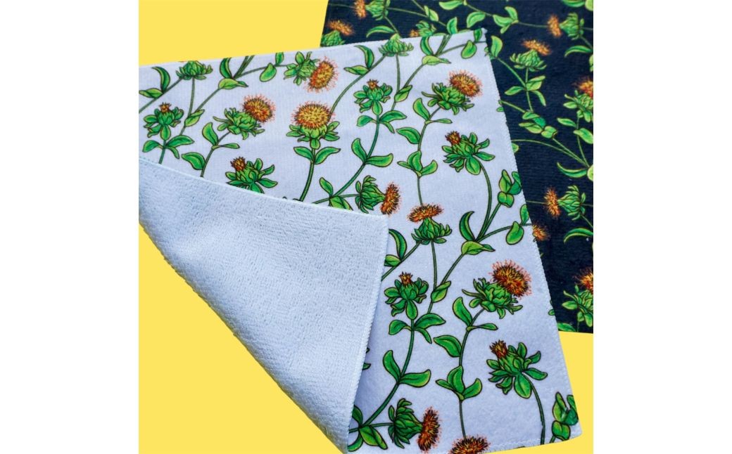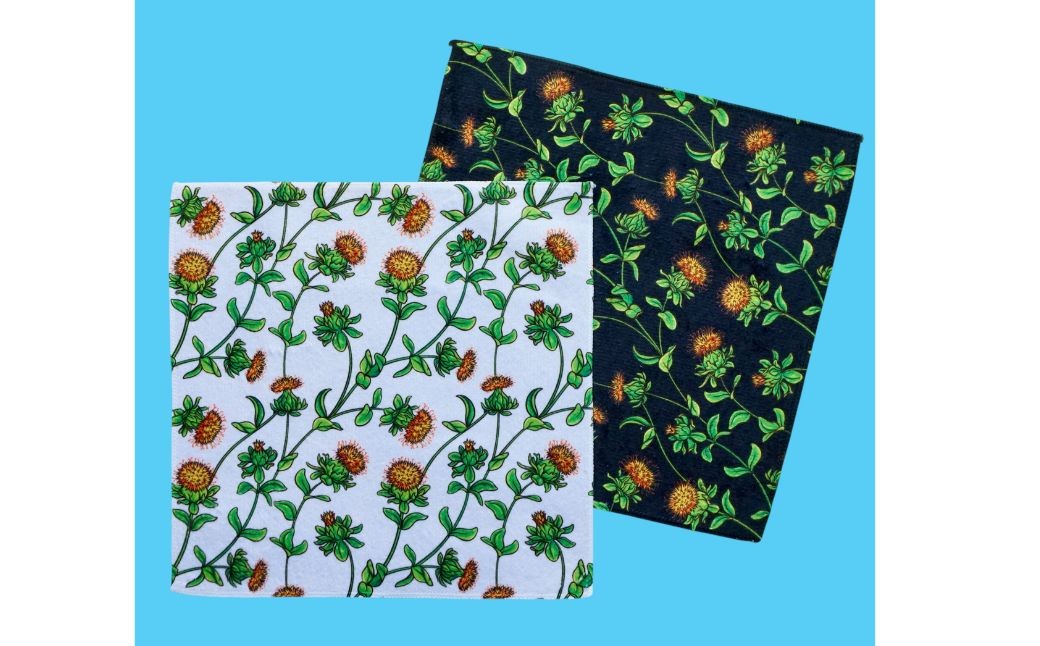 「べに花の郷桶川市」にちなんだ、べに花のデザイン。毎日使いに嬉しいハンドタオル ハンドタオル べに花柄 2枚セット | ハンカチ ミニタオル 日本製 タオル セット 白 黒 花柄 おしゃれ かわいい 紅花 べにばな 紅花 雑貨 日用品 生活用品 国産 手拭き ミニタオル 贈り物 プチギフト プレゼント ロックスデザイン ROX design 埼玉県 桶川市