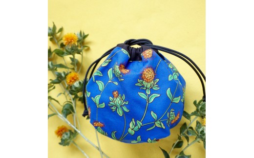 <青>黒べに花柄のまんまる巾着 ~べに花の郷桶川市~ | 巾着 …