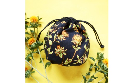 <黒>黒べに花柄のまんまる巾着 ~べに花の郷桶川市~ | 巾着 …