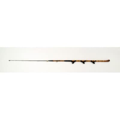 | 容量 | ・タイ竿ワンピース[1本] 全長:121cm 先径:1.3mm 元径:10.5mm 重さ:148g 握りの太さ:15.5mm 握りの長さ:20cm かんざし:水牛の角 穂先:上から60cmグラス ガイド:スネークガイド、金 握り:淡竹 オモリ15号 |