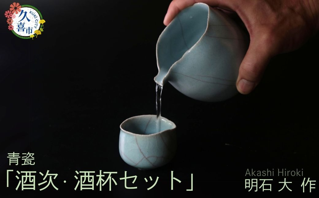 水から連想される酒次・酒盃 限定1点限り酒次・酒盃セット 青瓷 桐箱入り 現代茶陶展 受賞作家|おちょこ 徳利 酒 日本酒 明石大 作品 贈答 贈り物 せいじ プレゼント 特別 徳利 特産 陶芸 陶器 焼き物 おしゃれ インテリア 伝統的工芸品 和 風情 美しい 茶道 アーティスト 陶芸家 有名 日本 美しい 陶芸 一点もの 映える 埼玉県 久喜市