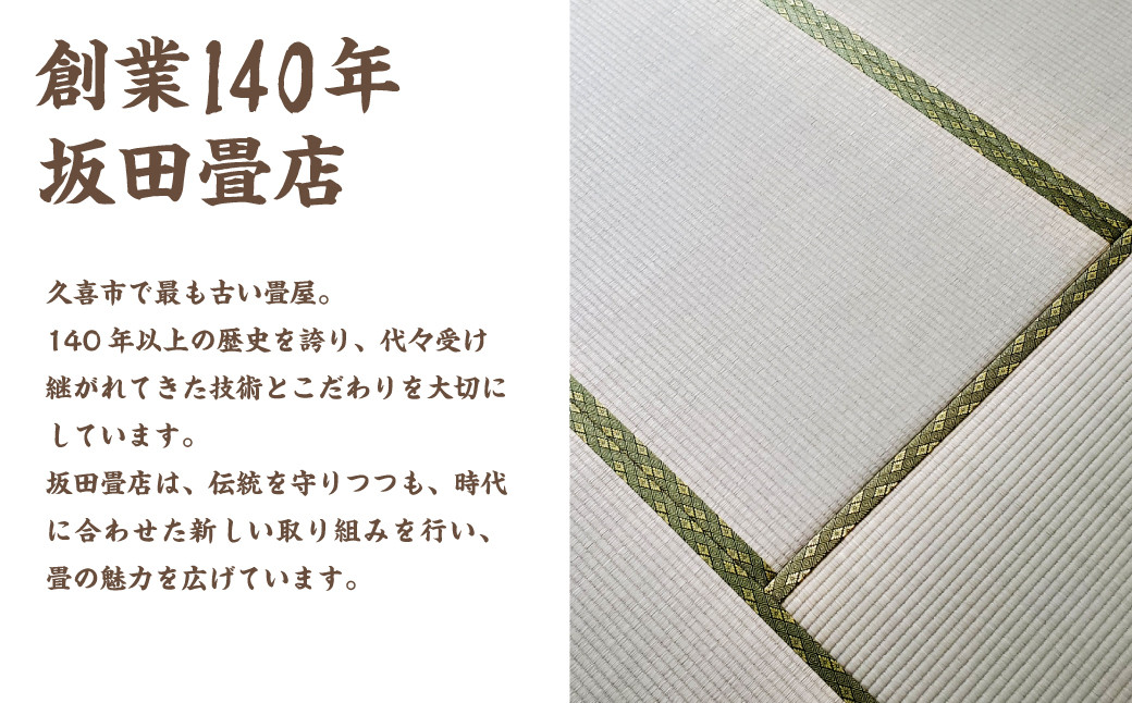 坂田畳店は、140年以上の歴史を誇り、代々受け継がれた技術とこだわりを大切にしています。