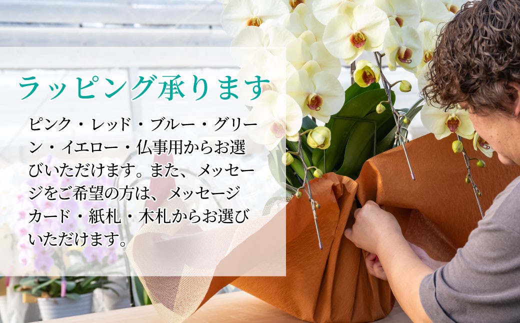 真心こめて育てた胡蝶蘭を誕生日や父の日、母の日、開店祝いなどの贈り物としてご利用ください(ご自身でもお楽しみいただけます)。