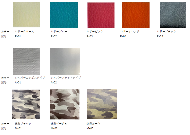 レザー:クリーム、ブルー、ピンク、オレンジ、ブラック