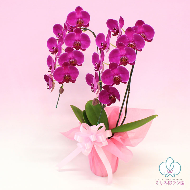 美しいワイン色、丸みのあるフォルムにぐっと心をつかまれるミディタイプの胡蝶蘭です 0026-001 中輪胡蝶蘭 恋姫2本立ち(ラッピング付)