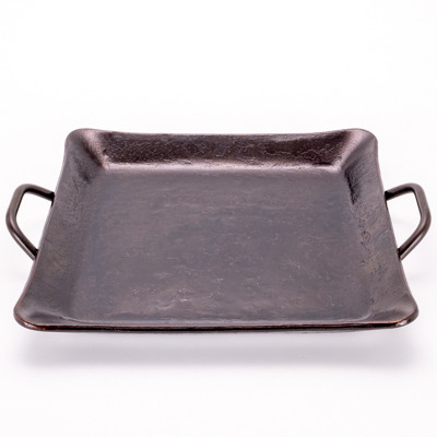 鍛造 手作り 鉄フライパン IH可 30cm角 両手 6mm極厚鉄板【1389856】
