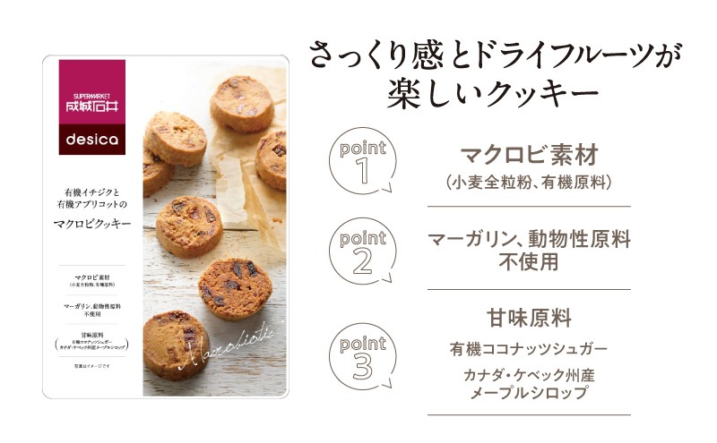成城石井 desica 有機 イチジク アプリコット マクロビクッキー 90g 6個 スイーツ お菓子 おやつ ドライフルーツ 朝食 間食 ココナッツシュガー メープルシロップ やさしい 甘さ