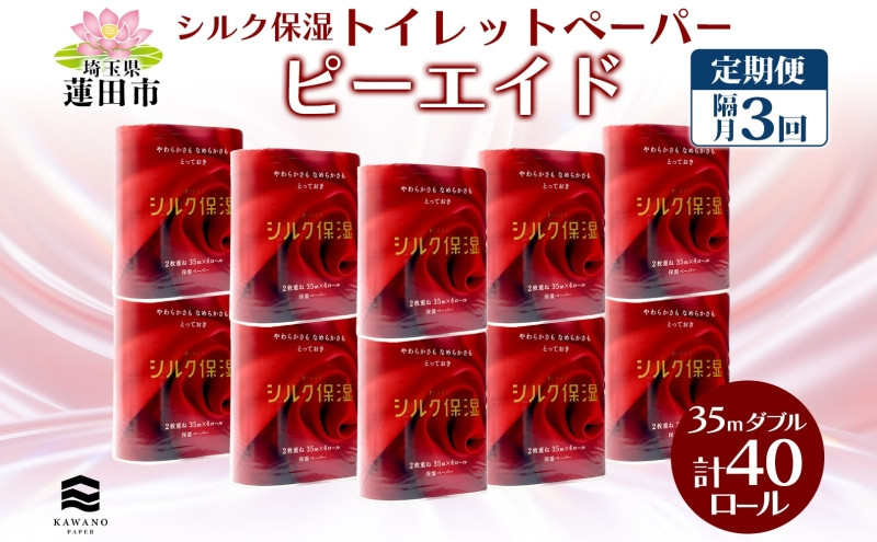 定期便 隔月全3回 ピーエイド シルク保湿 トイレットペーパー ダブル 計40ロール 4ロール×10パック 35m 河野製紙 ペーパー やわらかい 保湿 高品質 高級 備蓄 紙 日用品 常備品 消耗品 大容量 防災 産後 痔 送料無料 埼玉県 蓮田市