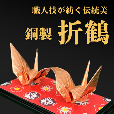一枚の銅板から折り上げられた二羽の鶴が優雅に連なる姿は、調和や絆を象徴し、特別な贈り物やインテリアに最適です。
