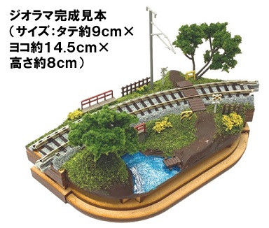 【セット内容】 ・ジオラマくん 1セット ・冊子(STEAMで深まる鉄道模型) ジオラマの作り方を楽しみながら学び・知ることができるジオラマ入門セット「ジオラマくん」を提供致します。 「ジオラマくん」はジオラマ作りに興味はあるけれども、何から手をつければわからない初心者の方を対象とした、「まずはお手軽に作る楽しみを知っていただく」ための入門セットです。 紙粘土や絵具、ボンドなどジオラマ作成に必要な部材は揃っており、絵筆やカッターなど自宅にあるような工具さえあれば簡単にジオラマ作りをお楽しみいただけます。 また、ジオラマ作りを楽しみながら学べる絵本「ジオラマくん」が入っており、ジオラマづくりの「なぜ?」を登場キャラクターの目線で楽しく学ぶことができます。 完成するとおおよそハガキほどの大きさの、春をイメージさせる彩り豊かなジオラマが出来上がります。 付属のペーパークラフト製電車を線路上に展示して飾ったり、線路をレイアウトにつないでお好みの車両を走らせたりしてお楽しみいただけます。 ・完成までの所要時間:約2~3時間(乾燥時間を除く) ・対象年齢:10歳以上 ●セット内容 説明書、ジオラマくん絵本、ジオラマベース(MDF製)、曲線線路R183-45°(1本)、線路固定用ビス、単線架線柱、ユニトラック線路用スロープ橋脚、ペーパーキット(鉄橋・踏切・柵・船着場)、ペーパークラフト(車両、農機具小屋など)、紙粘土、花(黄色)、草や葉の表現に使用するスポンジ状素材(大・小各1袋)、広葉樹の幹(小・2本)、絵の具(青・白・茶)、ボンド ■ご自身でご用意頂くもの カッターナイフ(カッターマットもあると便利です。)、筆、プラスドライバー(線路の固定用) ※数量限定40セット