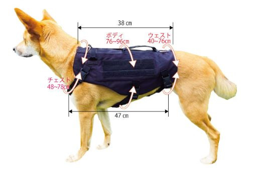 (サイズ:チェスト48㎝~78㎝ ボディ76㎝~96㎝ ウエスト40㎝~76㎝)