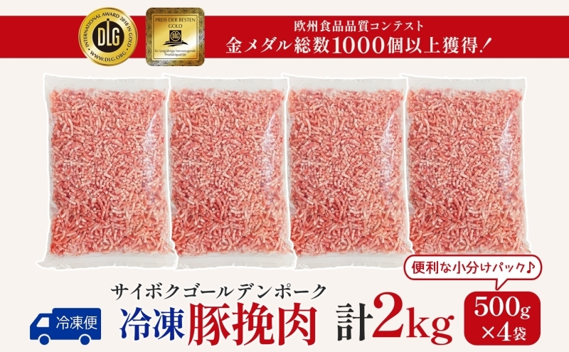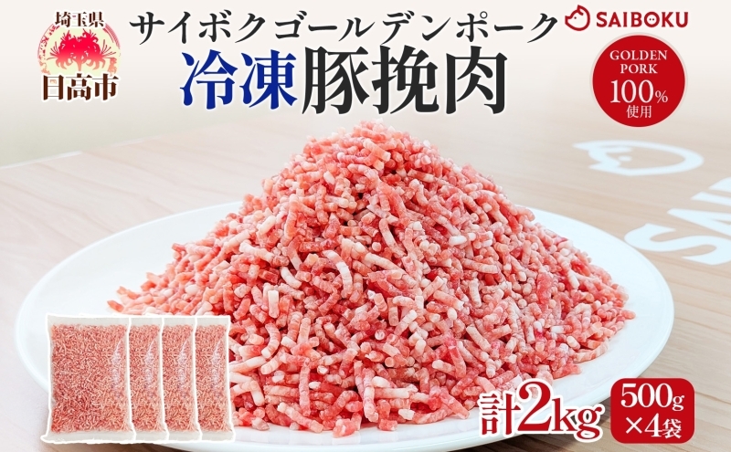 [№5712-0772]サイボク 冷凍 ゴールデンポーク 挽肉 2kg 500g 4袋 豚ひき肉 銘柄豚 パラパラ 赤身 ジューシー チャック付き ストック食材 餃子 そぼろ 冷凍保存 お取り寄せ 埼玉県 日高市
