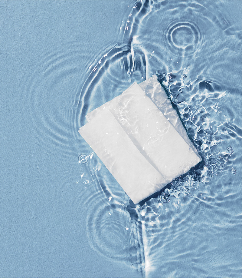 「美容液が染み込んだ1枚のシートが、⽇中の肌印象を変える。」コットン100%のシートが⽇中の汗や⽪脂、メイク汚れまでクレンジングし保湿する、2in1フェイスシート刺激や汚れで疲れた⽇中の肌を、10秒リセット※1。植物由来のクレンジング成分※2と美容成分※3が染み込んだコットン100%のシートが、⽇中の肌表⾯の汚れや、汗、⽪脂、メイク汚れを落とし、同時にみずみずしい潤いをチャージ。1枚で”落として潤す”を叶える、敏感肌⽤2in1フェイスシート。