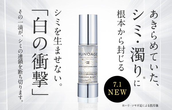 「MUNOAGE(ミューノアージュ)」から、 洗顔後、スキンケアの最初に使用する導入タイプの新美白(※1)美容液「ダブルホワイトニングセラム」(医薬部外品)がパワーアップして新発売。