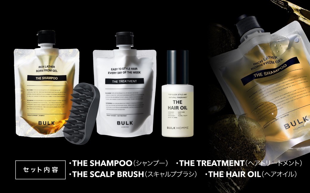 040-003 【バルクオム】BULK HOMME HAIR CARE スペシャルセット(シャンプー、トリートメント、スキャルプブラシ、ヘアオイル)