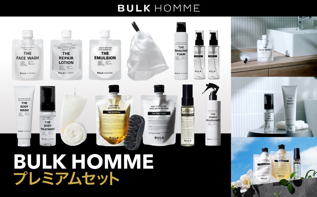 150-003 【バルクオム】BULK HOMME BULK HOMMEプレミアムセット(洗顔料、薬用化粧水、乳液、泡立てネット、シャンプー、トリートメント、スキャルプセラム、スキャルプブラシ、ヘアオイル、ファブリックフレグランス、ボディウォッシュ、ボディトリートメント、ボディタオル、シェービングフォーム、詰め替えボトル100mL×2個)