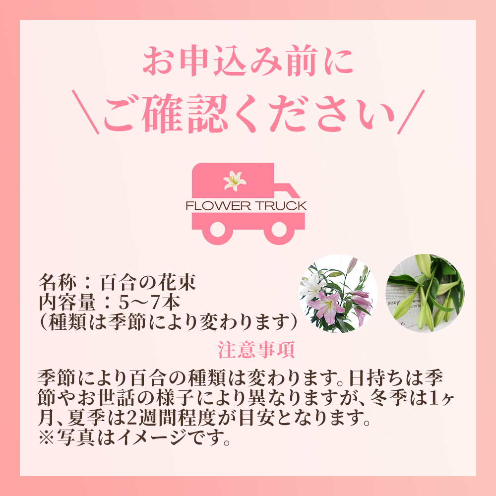 ※百合の種類の指定や色の指定はできません。季節により変わりますので、あらかじめご了承ください