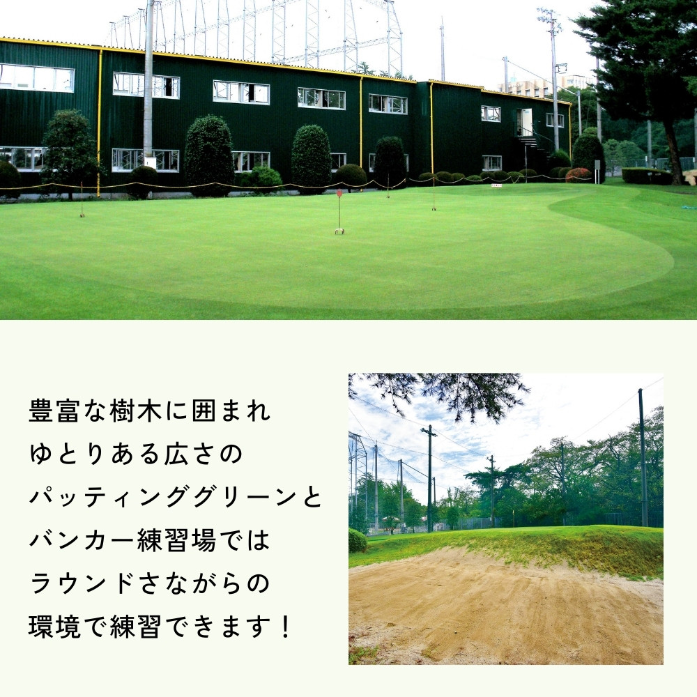 また、豊富な樹木に囲まれたパッティンググリーンとバンカー練習場は、ゆとりある広さの中、ラウンドさながらの環境でゆっくりと練習していただけます。