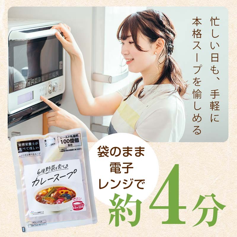 管理栄養士が考えた、カラダとココロが必要とする様々な食材を使用した具沢山のスープ。素材にこだわり、美味しさを引き出したスープは電子レンジで対応で手軽に食べられます。