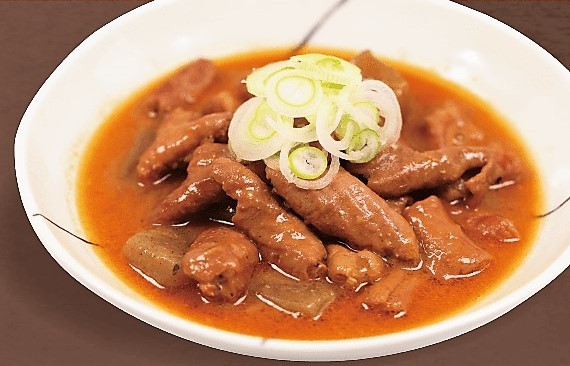 2種類の味噌をベースに、にんにくのうま味がきいたピリ辛のもつ煮です。