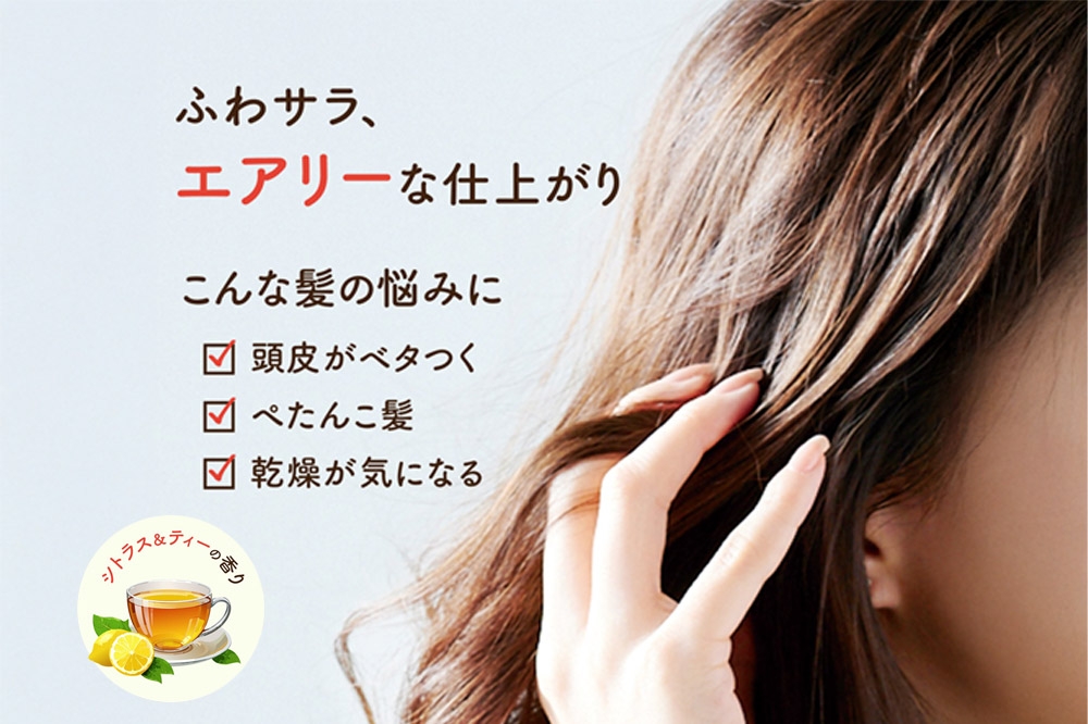 頭皮の乾燥をケアし、ぺたんこ髪をふんわりボリュームへ。シトラス&ティーの香り。