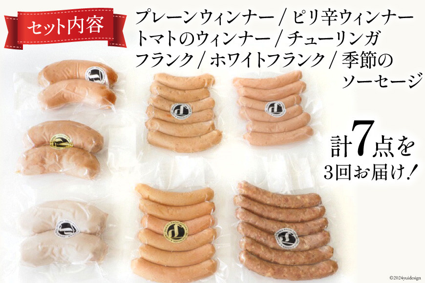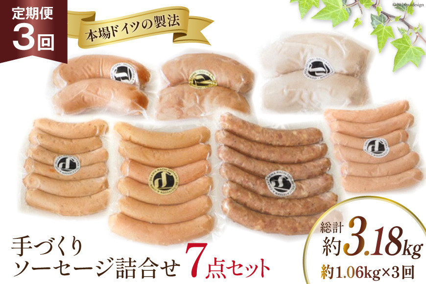 自宅やアウトドアで本格ソーセージ!! 定期便【3ヶ月連続お届け】 手づくりソーセージ詰合せ 7点セット 約1.06kg×3回 総計3.18kg [デリカテッセン アーチャン 埼玉県 小川町 236]