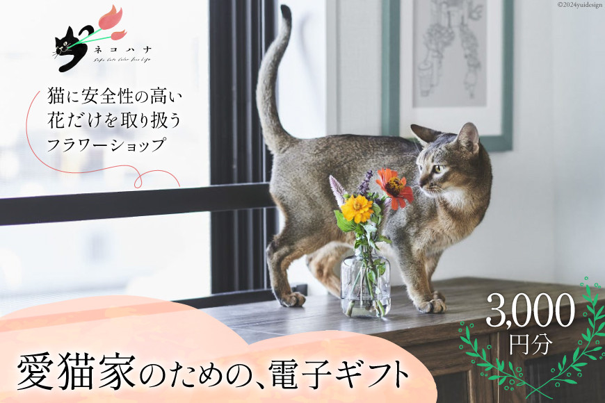 猫に安全性の高い花だけを取り扱うフラワーショップ 花束 ネコハナ 電子ギフトコード 3,000円分 [ネコハナ 埼玉県 小川町 260] 花束プレゼント 花 生花