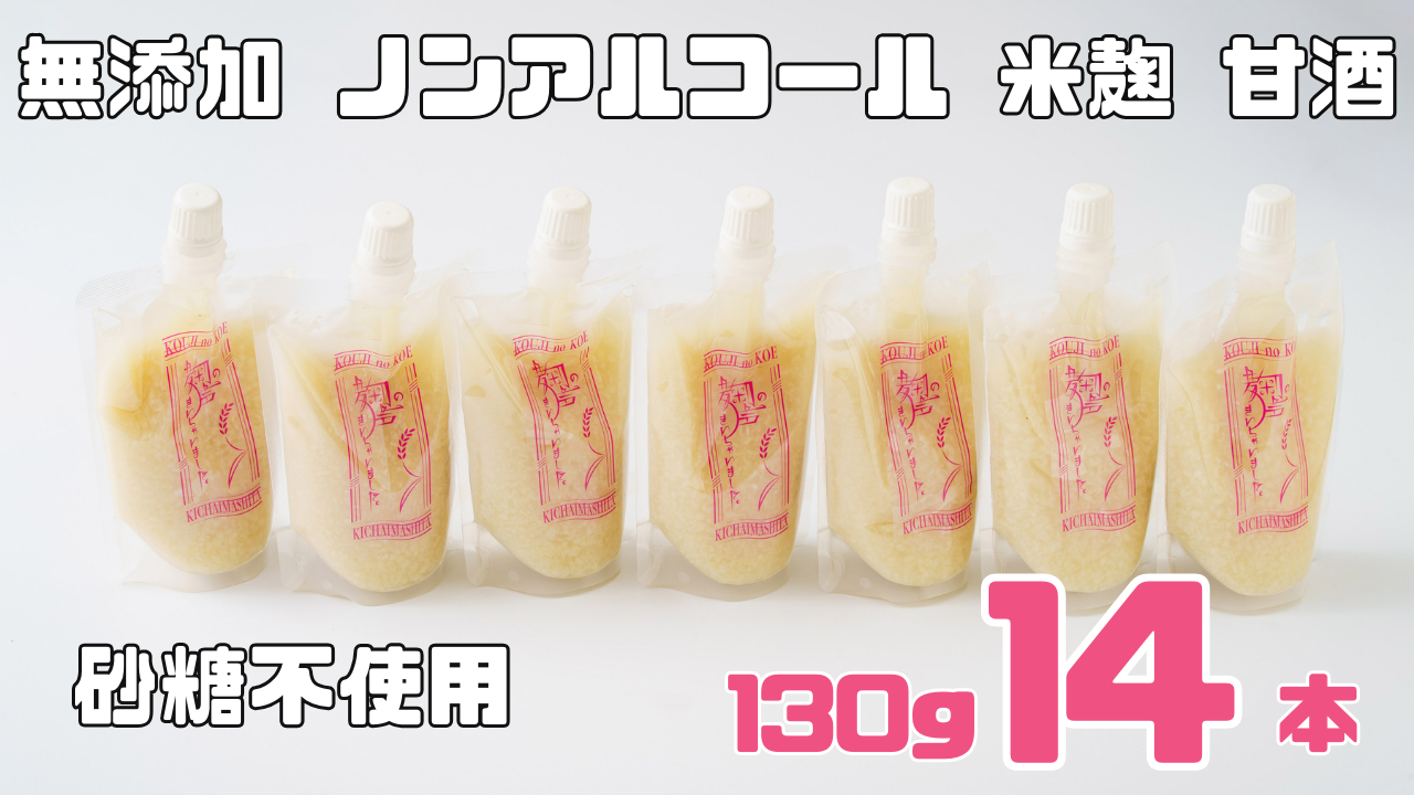 ノンアルコール 甘酒 パウチ 130g×14本 無添加 砂糖不使用 麹 米麹 米 特別栽培 コシヒカリ 特別栽培米と麹のみで造った無加糖のノンアルコール甘酒 「麹の声きいちゃいました。」 飲む点滴 あまざけ スムージー 調味料 埼玉県 川島町