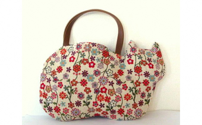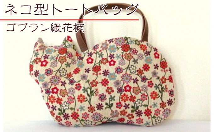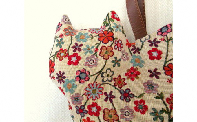 オリジナルネコ型トートバッグ*ゴブラン織花柄ネコ